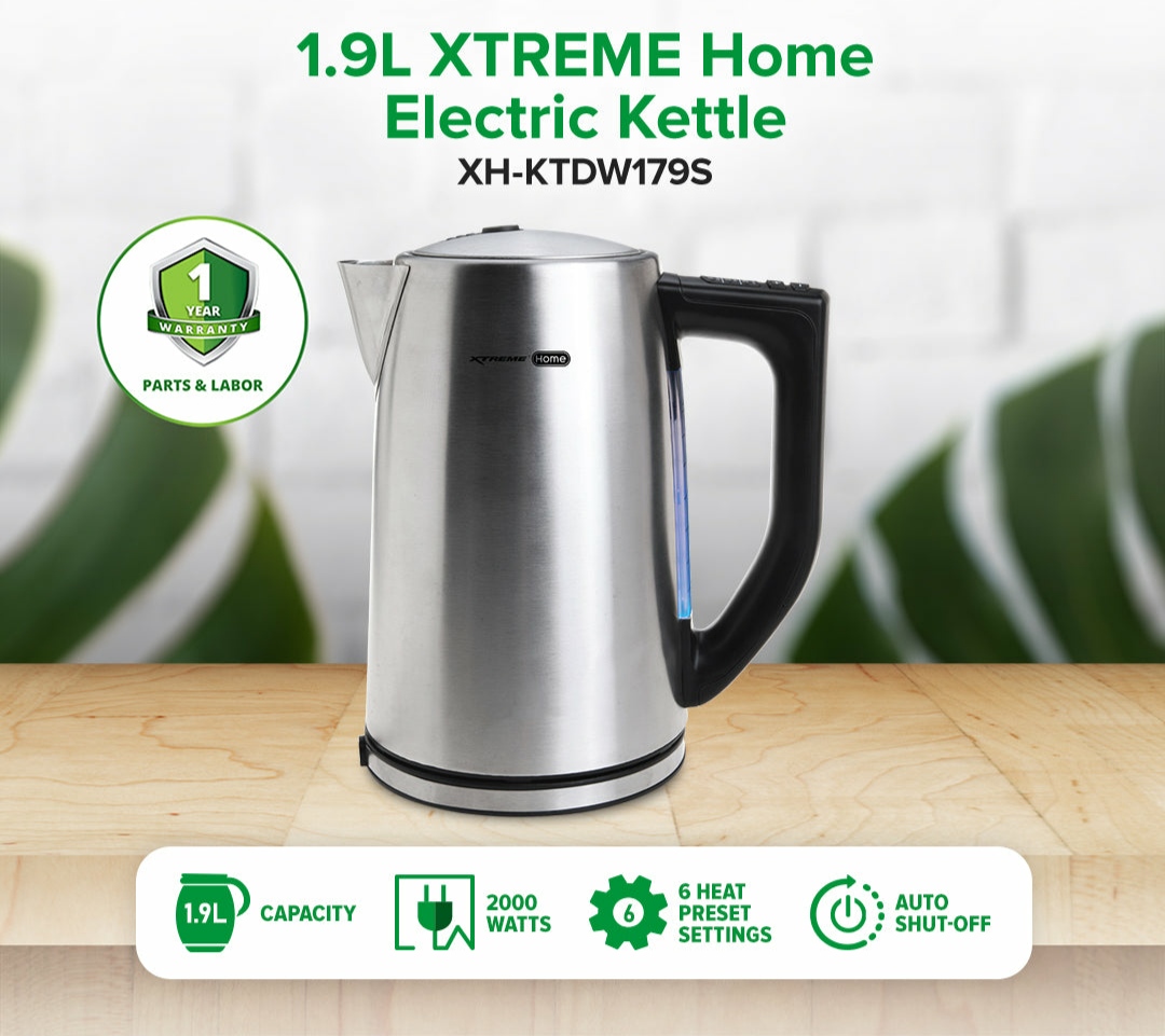 - Stainless steel cordless electric kettle